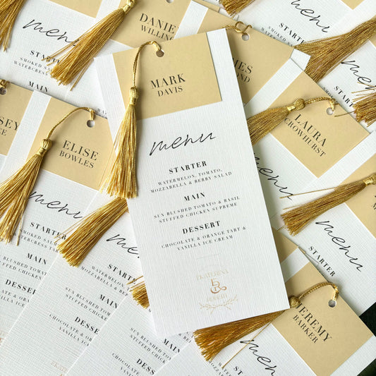 The Gatsby- Individual Minimalist Menu Card, Name & Tassel