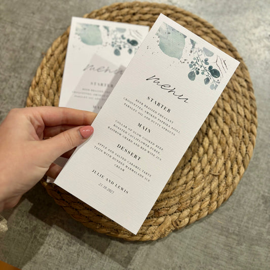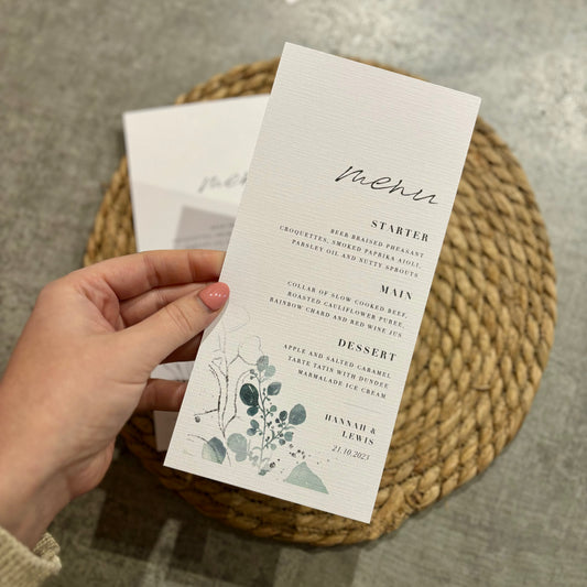 The Wren - Individual Wax Seal Minimalist Menu Card & Name