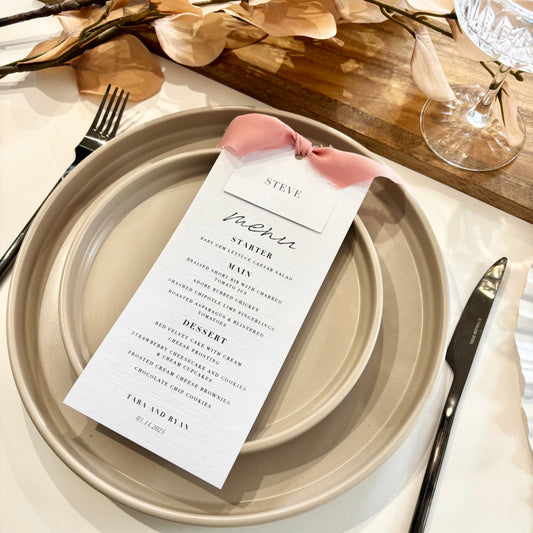 The Martha - Individual Minimalist Menu Card, Name & Ribbon