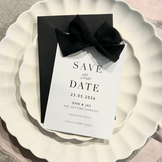 The Betsy - Luxury Satin Bow Save the Date & Envelope