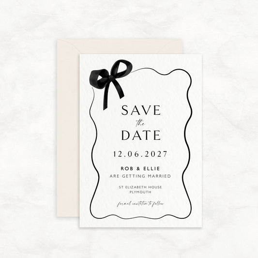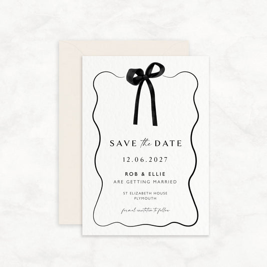 The Tini - Custom Luxury Bow Wedding Save the Date | Elegant Minimalist Design | Personalised Save the Date | Modern Simple Wedding Invitation