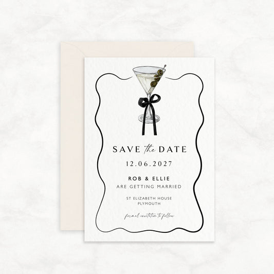 The Tini - Luxury Cocktail Wedding Save the Date | Elegant Minimalist Design | Personalised Save the Date | Modern Simple Wedding Invitation