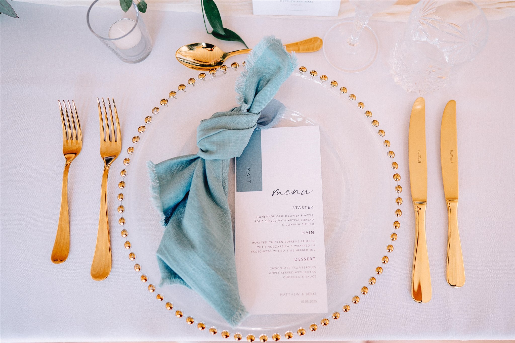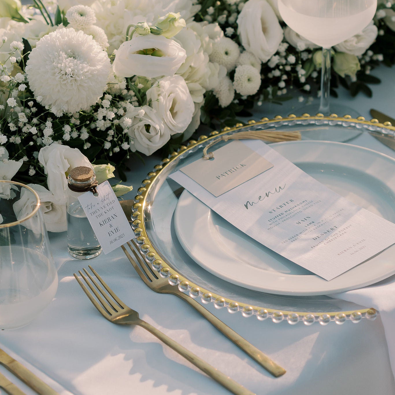 Complete wedding styling for your ceremony and reception — beautifully cohesive and stress-free. From £1,895 (2026, 40 guests)
