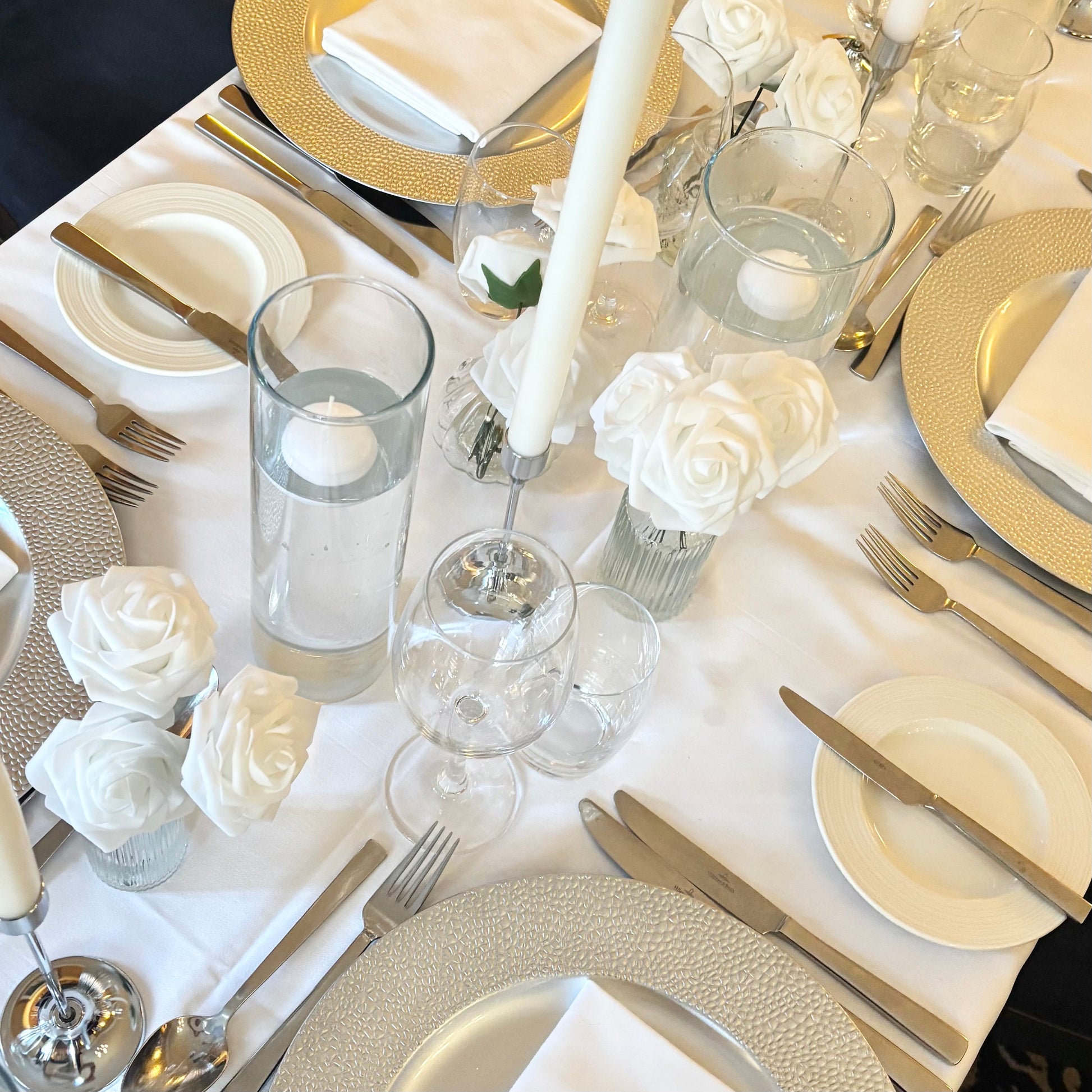Our silver candle stick holders are the perfect way to add height and detail to your table setting.