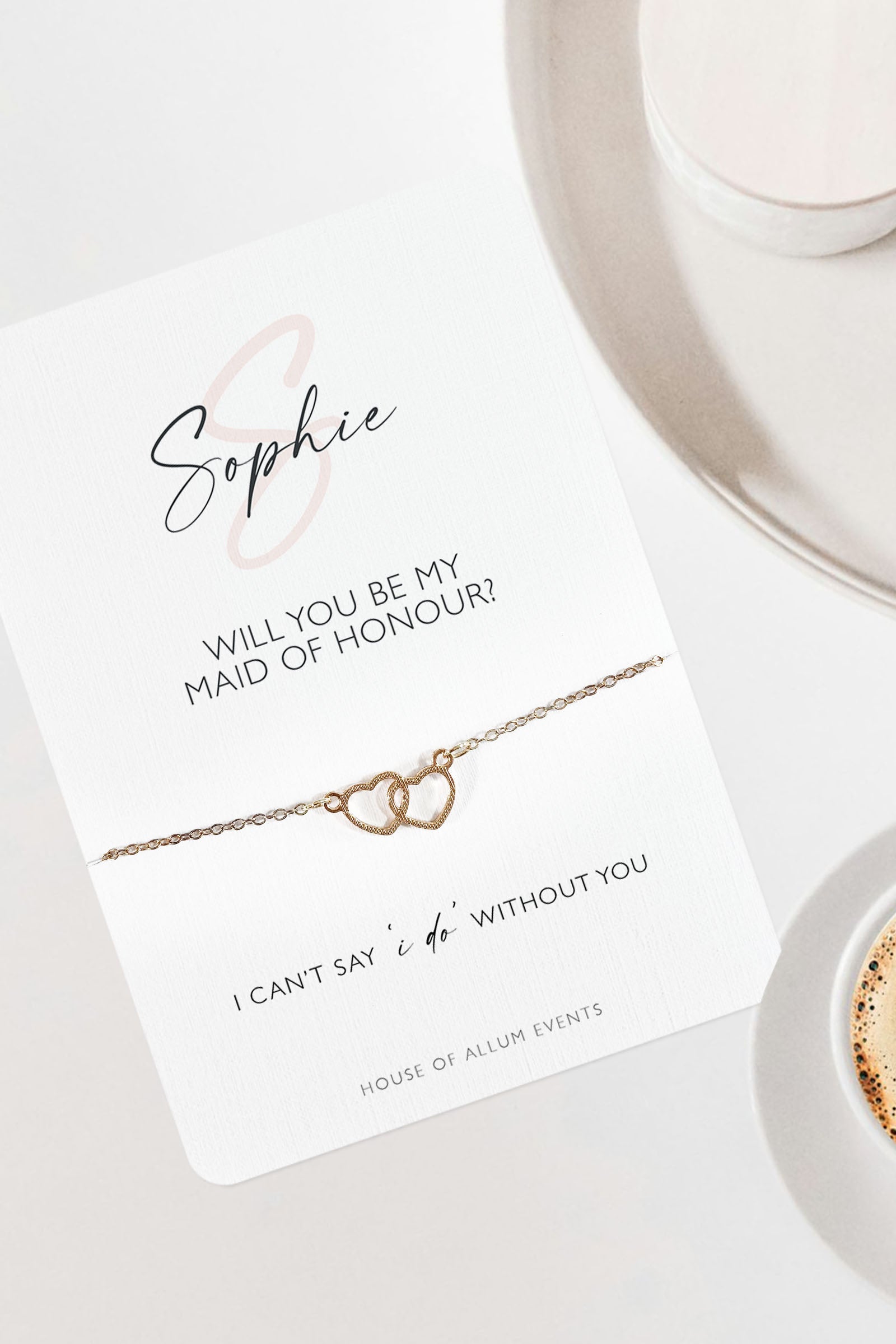 Looking for a meaningful way to ask your bridesmaids, maid of honour, or flower girl to be part of your big day? Personalise your bridal party gifts with our stylish bracelets and customisable card options.