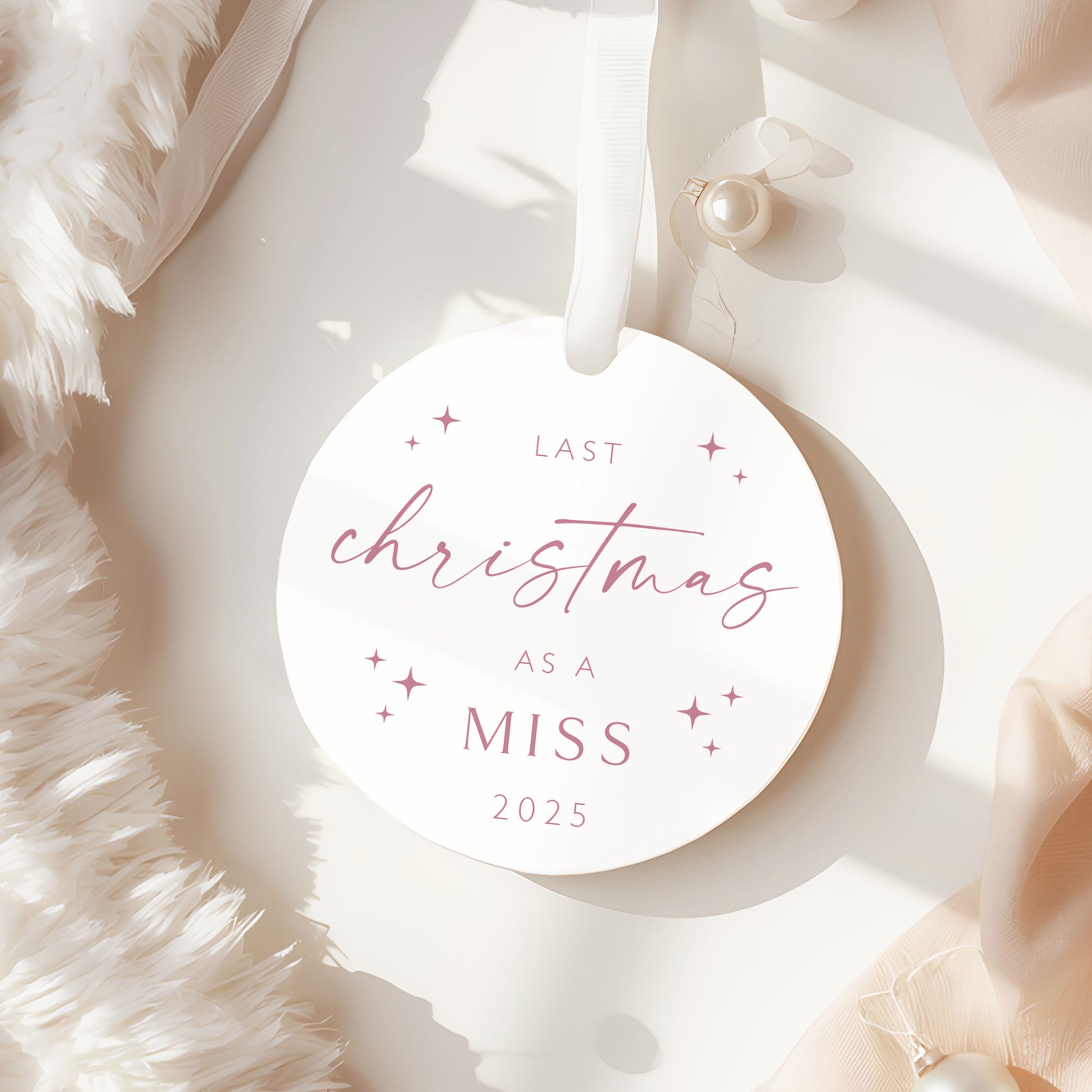 Celebrate this special milestone with a beautiful personalised “Last Christmas as a Miss” bauble — a lovely keepsake to remember the festive season.