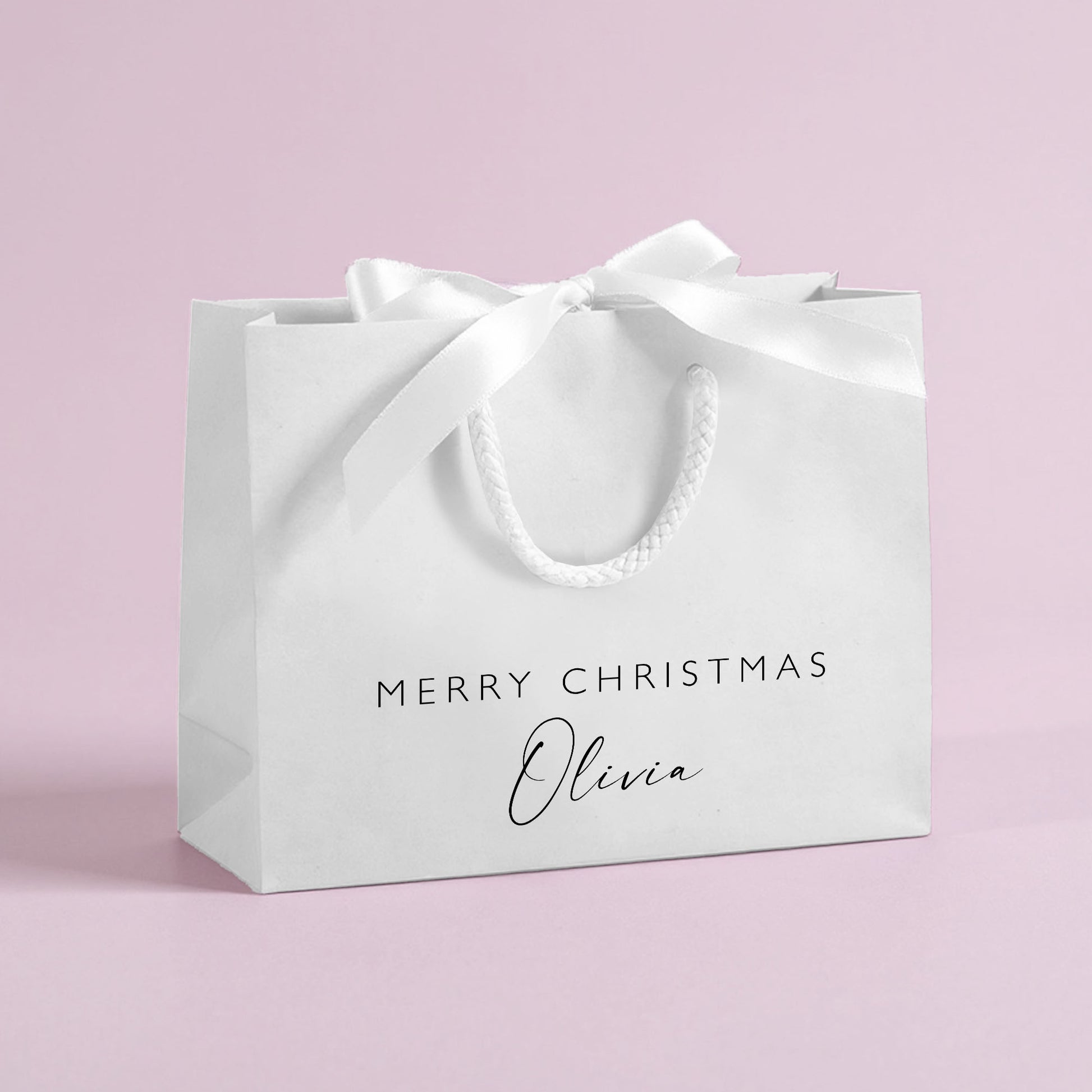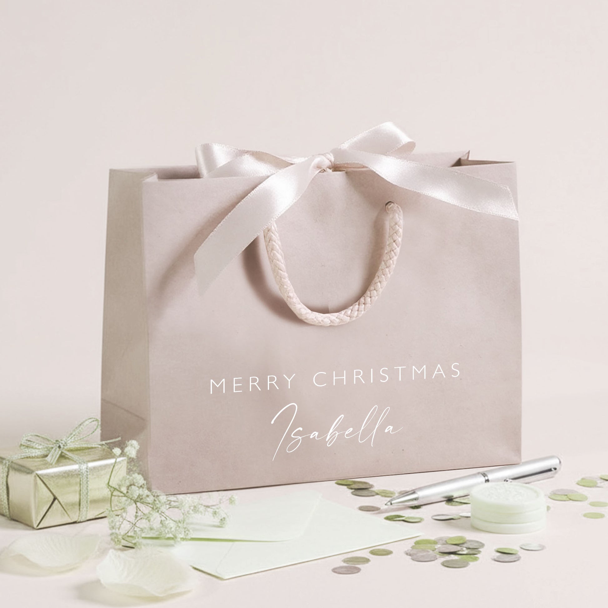 Personalised Christmas Gift Bags | Christmas Gift Favours | Personalised Name Ribbon Gift Bag | Christmas Wrapping